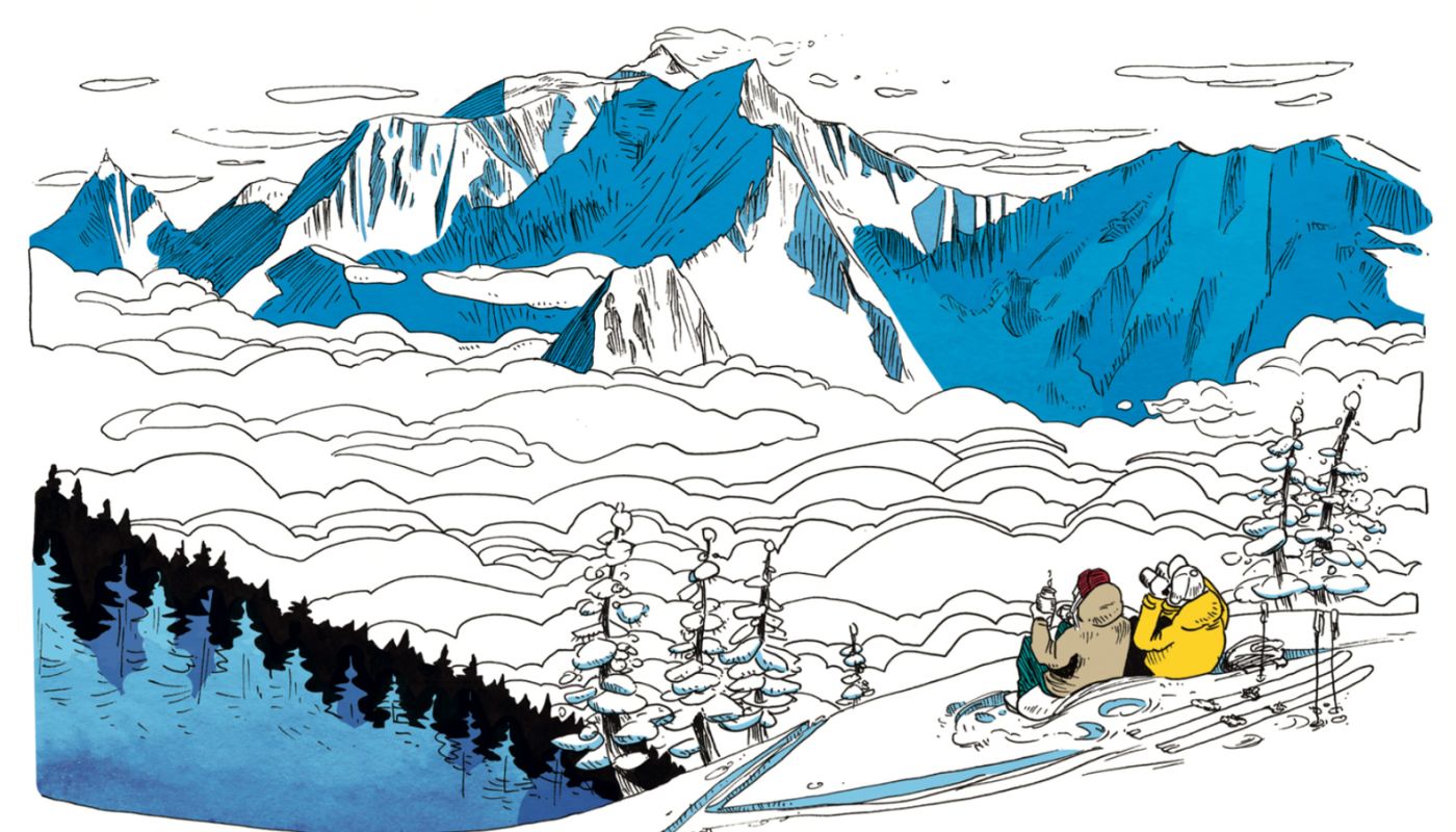 He has been drawing and skiing since childhood. After working as an architect, he chose to dedicate himself entirely to drawing. Today, his drawings adorn walls all over the world. He created this little graphic bird to tell stories to his nephews and let them experience extraordinary adventures.